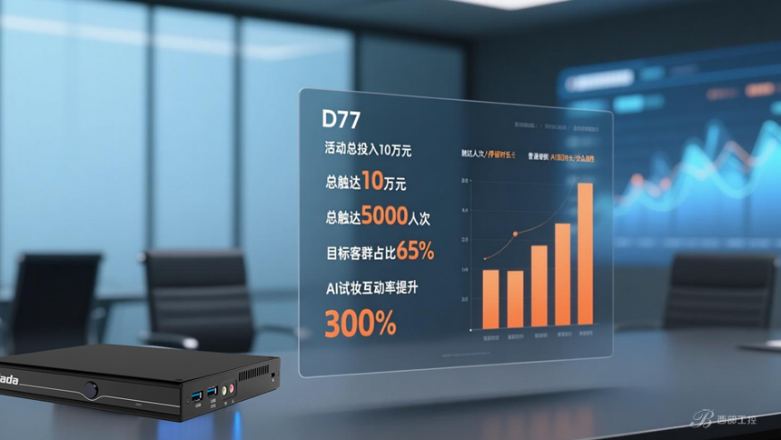 每次營銷活動(dòng)落幕,品牌商依托D77強(qiáng)大的本地邊緣AI能力,可快速開展深度營銷數(shù)據(jù)分析。以本次美妝活動(dòng)為例:總投入10萬元,累計(jì)觸達(dá)5000人次,其中核心目標(biāo)客群(25-35 歲女性)占比高達(dá)65%,顯著超出預(yù)期目標(biāo);報(bào)告同時(shí)顯示,搭載AI試妝功能的內(nèi)容,其互動(dòng)率達(dá)到普通視頻的3倍。這份數(shù)據(jù)報(bào)告不僅直觀印證了本次活動(dòng)的成效,更關(guān)鍵的是為后續(xù)活動(dòng)策劃提供了精準(zhǔn)的數(shù)據(jù)支撐與優(yōu)化方向,助力品牌形成營銷策略的閉環(huán)迭代。