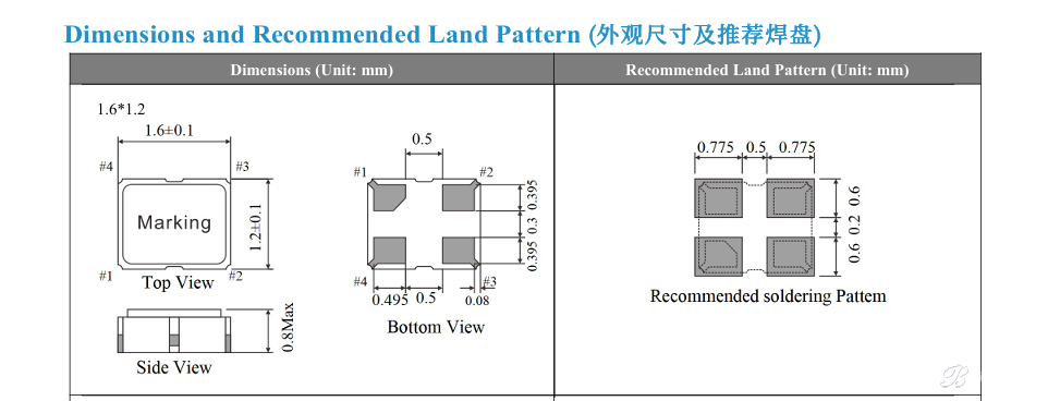 普通有源晶振有4個(gè)腳,有個(gè)缺角位的我們稱之為1號(hào)腳(PIN1)或腳#1,按逆時(shí)針(管腳向下)分別為2、3、4。